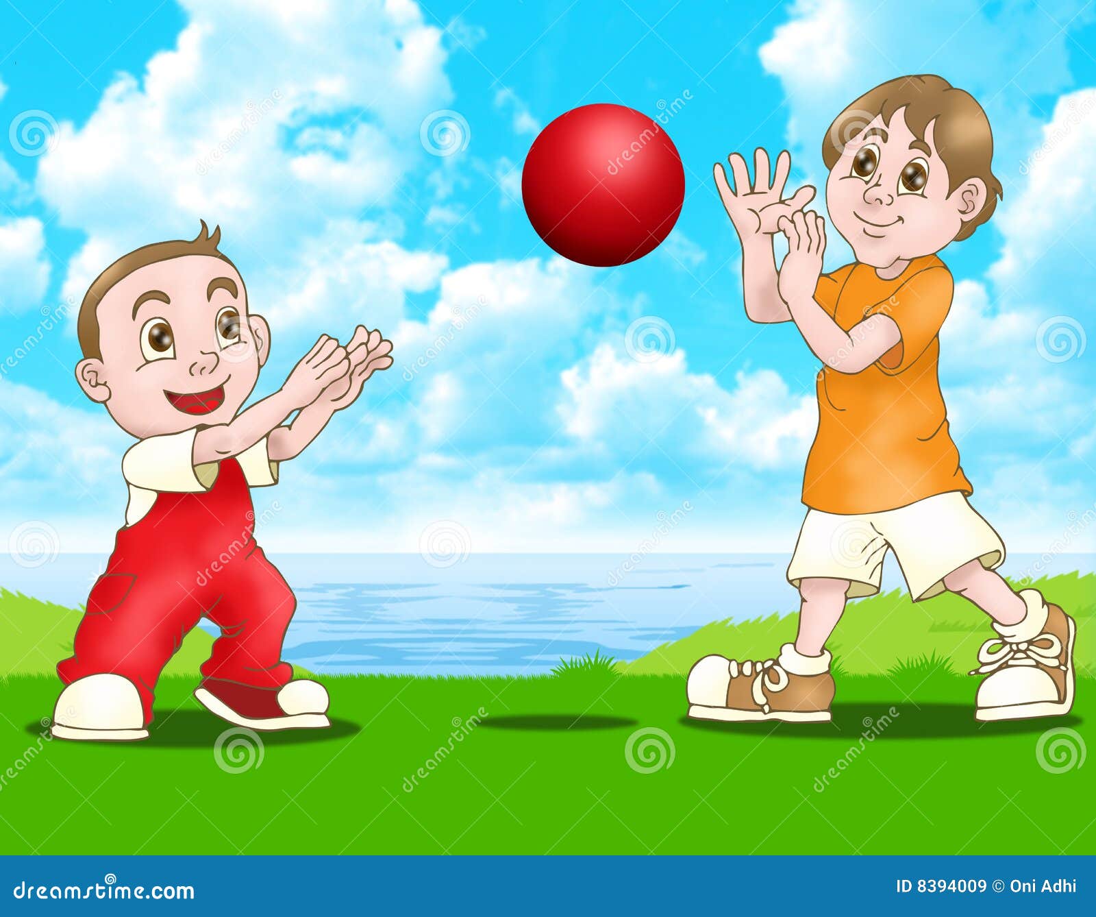Two Boys Play Red Ball Stock Illustration. Illustration Of Little - 8394009